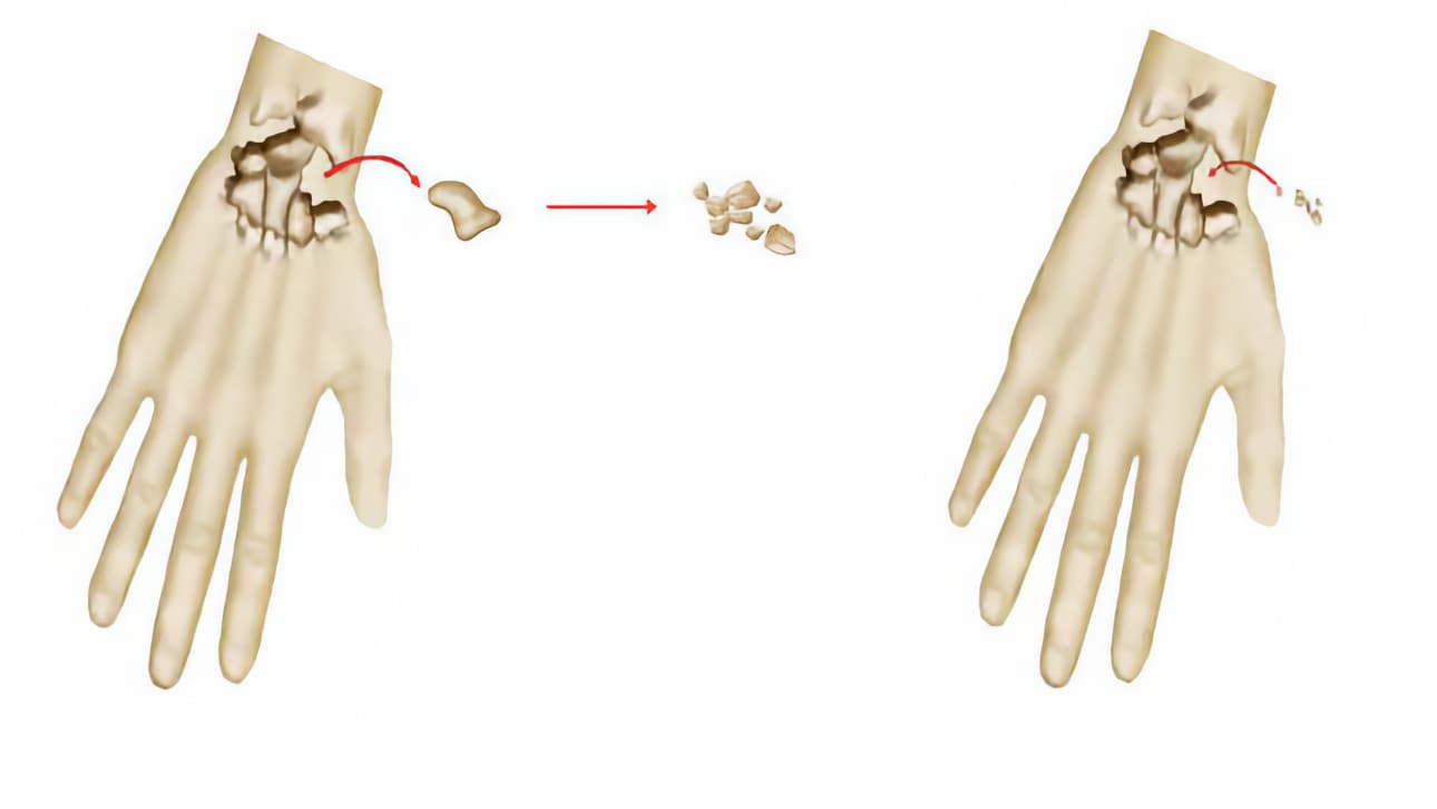 Κατά την κίνηση του χεριού σας, δημιουργούνται τριβές μεταξύ των διάφορων θραυσμάτων του σκαφοειδούς. Οι τριβές αυτές καταστρέφουν το οστό και εμποδίζουν την πόρωσή του.
