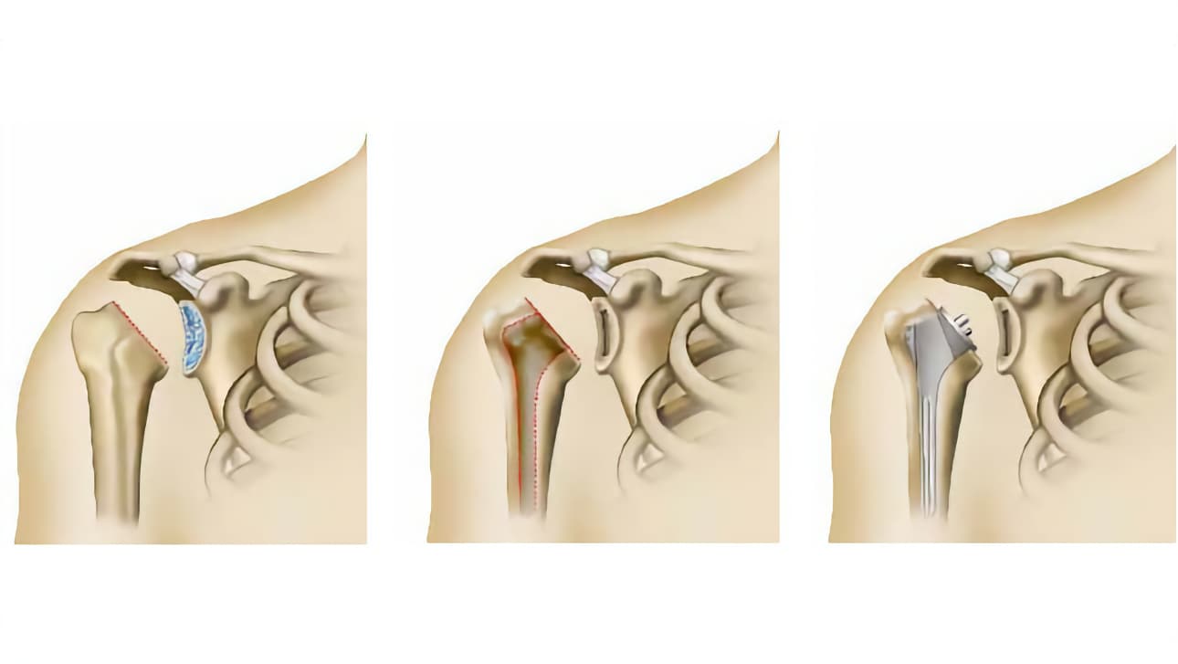 Πρόκειται για την αφαίρεση των περιοχών του οστού, των οποίων ο χόνδρος έχει φθαρεί και την αντικατάστασή τους με ένα ή περισσότερα τεχνητά μέρη ανάλογης μορφής (πρόθεση). Η επέμβαση αυτή επιτρέπει την ανώδυνη κίνηση του ώμου.