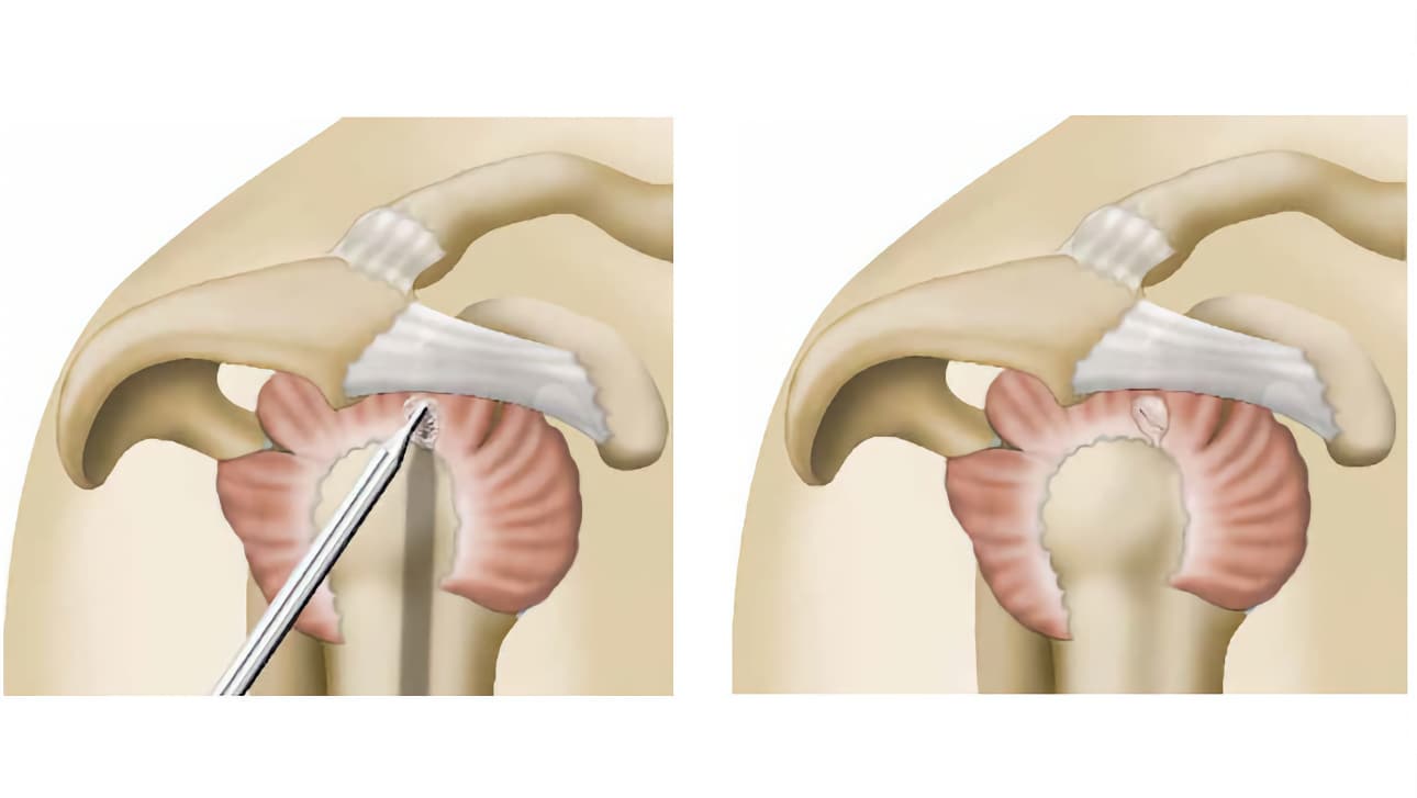 - να αφαιρέσει μερικά χιλιοστά του κάτω μέρους του οστού του ακρωμίου για να μειώσει τον κίνδυνο τριβών με τους τένοντες (ακρωμιοπλαστική).