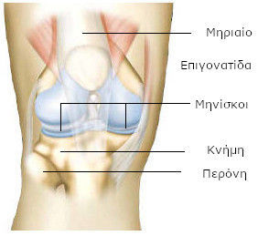 Τρία οστά σχηματίζουν την άρθρωση του γόνατος, το μηριαίο, η κνμήμη και η επιγονατίδα. Οι μηνίσκοι είναι δύο κομμάτια συνδετικού ιστού σε σχήμα σφήνας και ημισέληνου λειτουργούν ως "αμορτισέρ" μεταξύ του μηρού και της κνήμης.