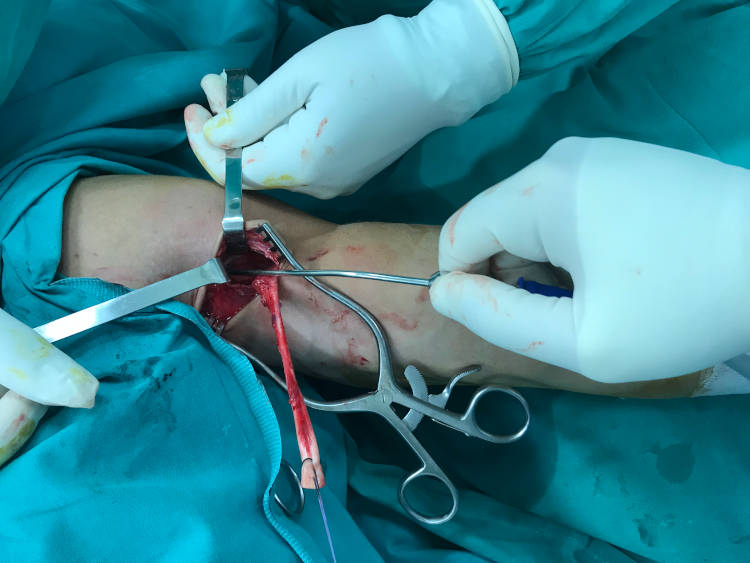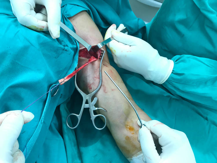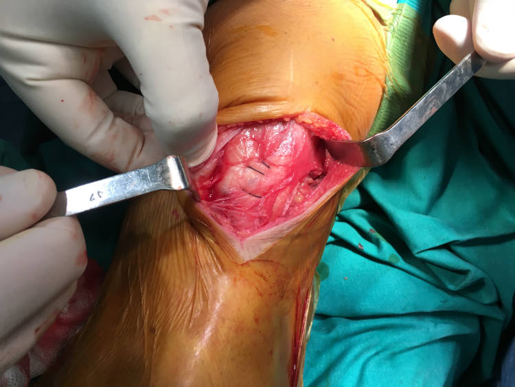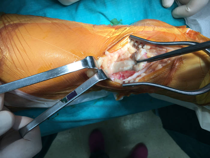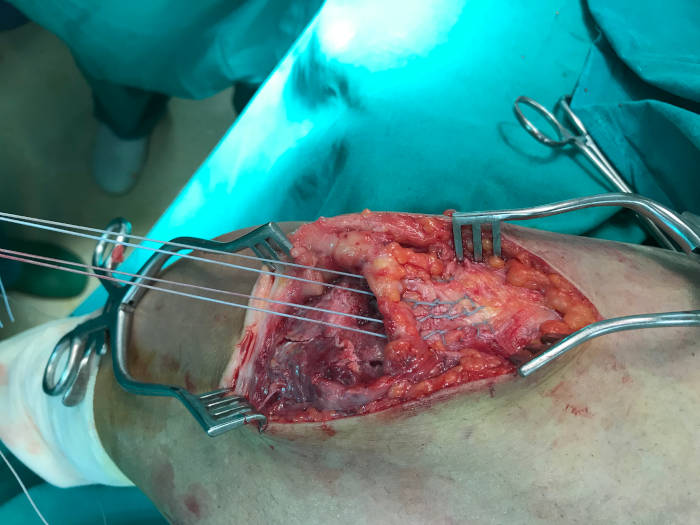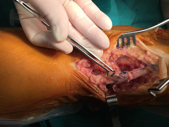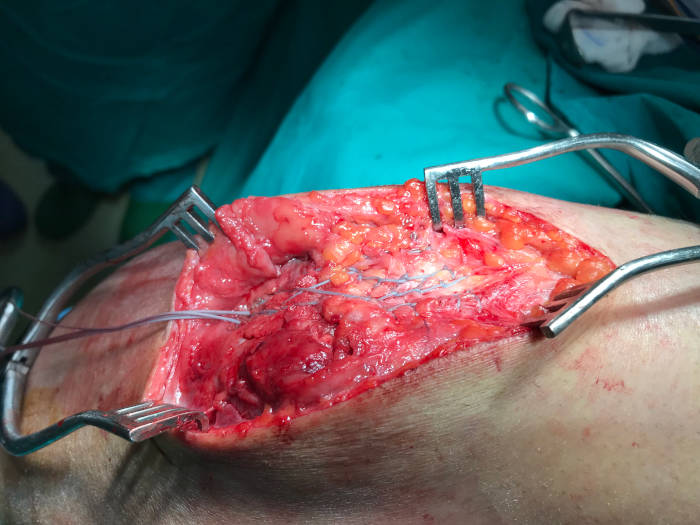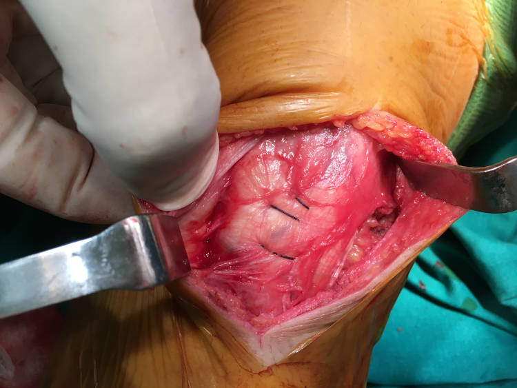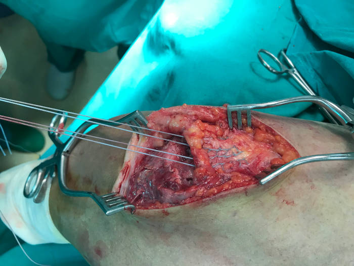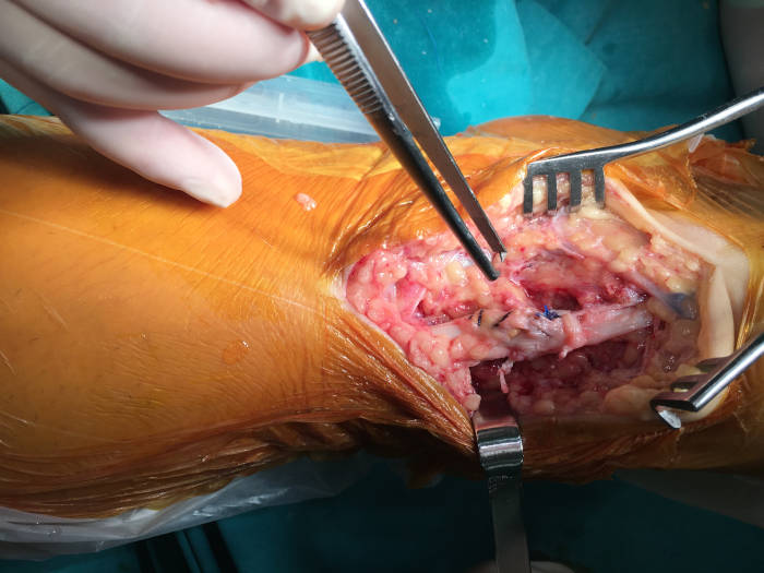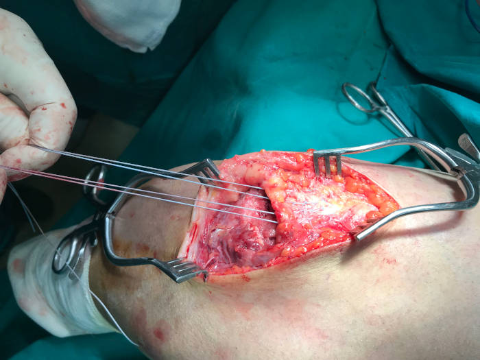 Συρραφή ενδοτενόντιας ρήξεως επιγονατιδικού
