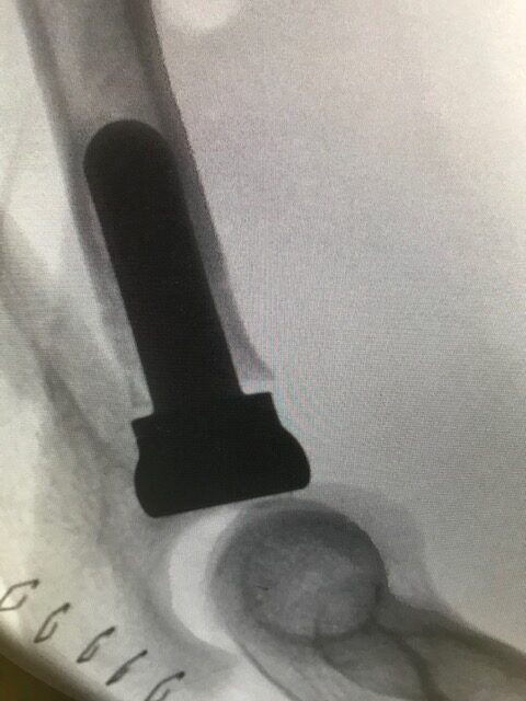 Αντικατάσταση κεφαλής κερκίδας κατόπιν συντριπτικού κατάγματος με τεχνητό πρόθεμα
