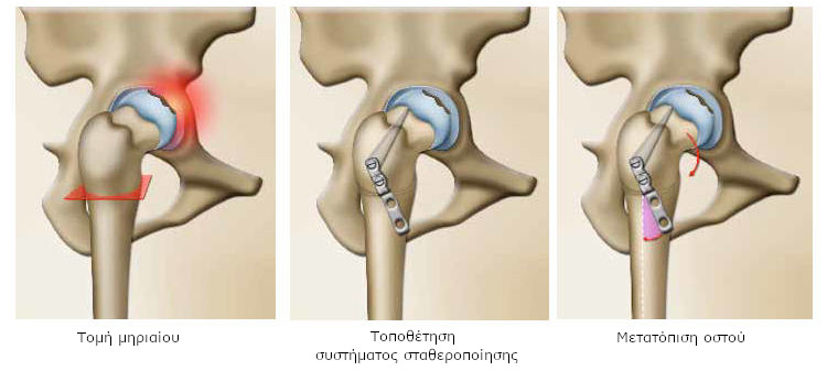 Πρόκειται για μετατόπιση του μηριαίου οστού, κατά τέτοιο τρόπο, ώστε να φορτίζονται λιγότερο οι φθαρμένες περιοχές. Υπάρχουν διάφορες τεχνικές.
