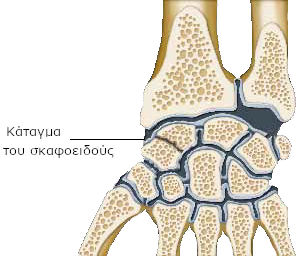 Το οστό, λοιπόν, δεν αιματώνεται καλά και η πόρωσή του (επούλωση) είναι πιο αργή και δύσκολη. Λόγω του κατάγματος, το σκαφοειδές έχει σπάσει σε κομμάτια.