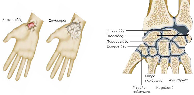 Εάν το σκαφοειδές έχει σπάσει, η λειτουργία του καρπού αποδιοργανώνεται: δεν είναι σταθερός και φθείρεται.