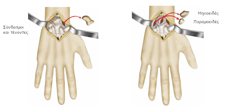 Επιτρέπει στις μαλακές δομές του καρπού (συνδέσμους, τένοντες, μυς) να αναδιοργανωθούν και να αναπληρώσουν την απώλεια των μικρών οστών της πρώτης σειράς.