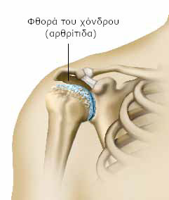 Η μαλακή επιφάνεια (χόνδρος) που καλύπτει τα οστά της άρθρωσης του ώμου έχει υποστεί φθορές. Στην ιατρική γλώσσα, μιλάμε για αρθρίτιδα ώμου.