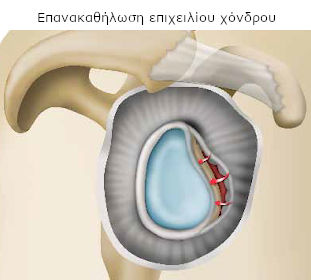 - να αφαιρέσει φθαρμένα μέρη του χόνδρου που περιβάλλει την ωμογλήνη,